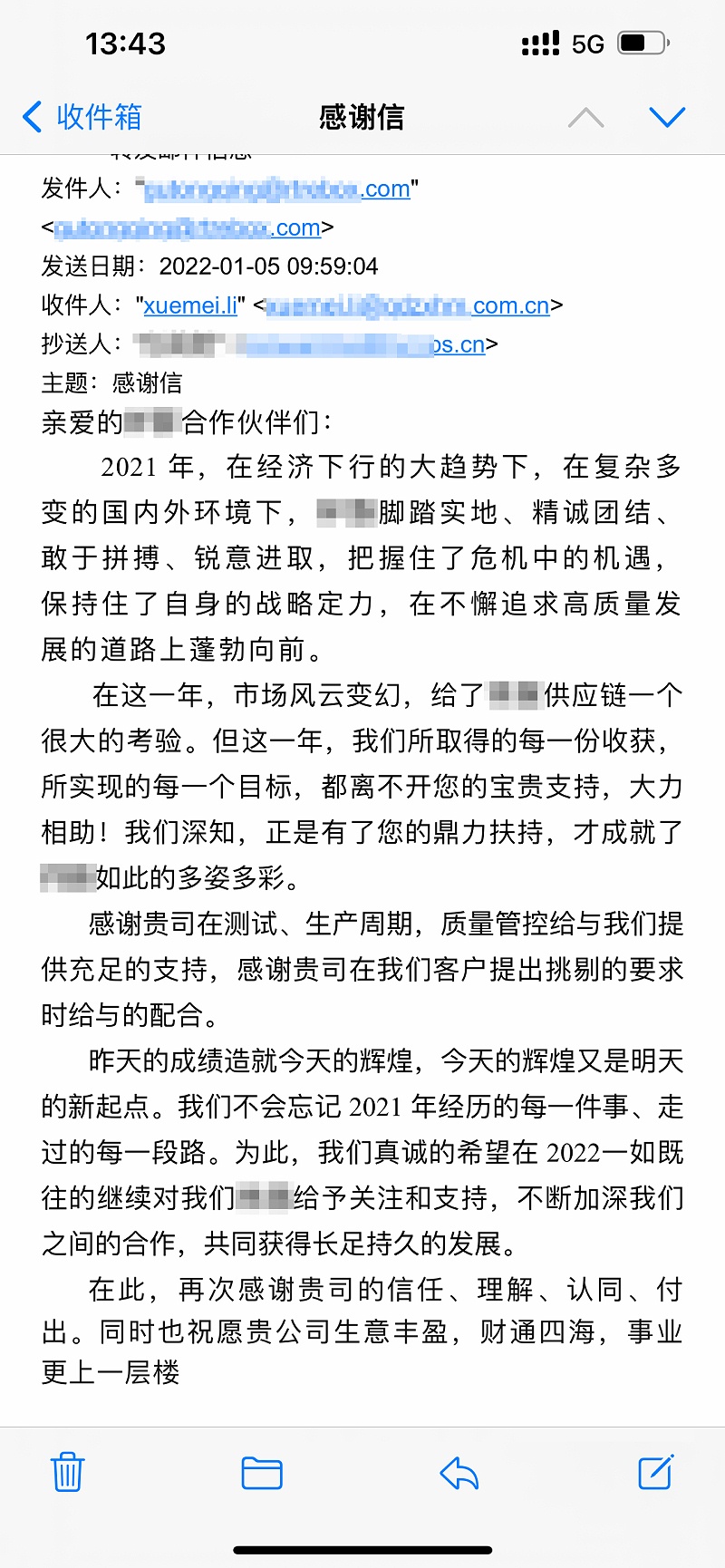 無論是收到感謝信還是獲評優(yōu)秀供應商,我們都深感欣慰,感謝我們的戰(zhàn)略合作伙伴和客戶朋友對我們工作的充分認可和高度贊許,讓我們內心充滿感動。這既是對我們2021年工作的肯定與見證,也將激勵我們在2022年繼續(xù)加油!